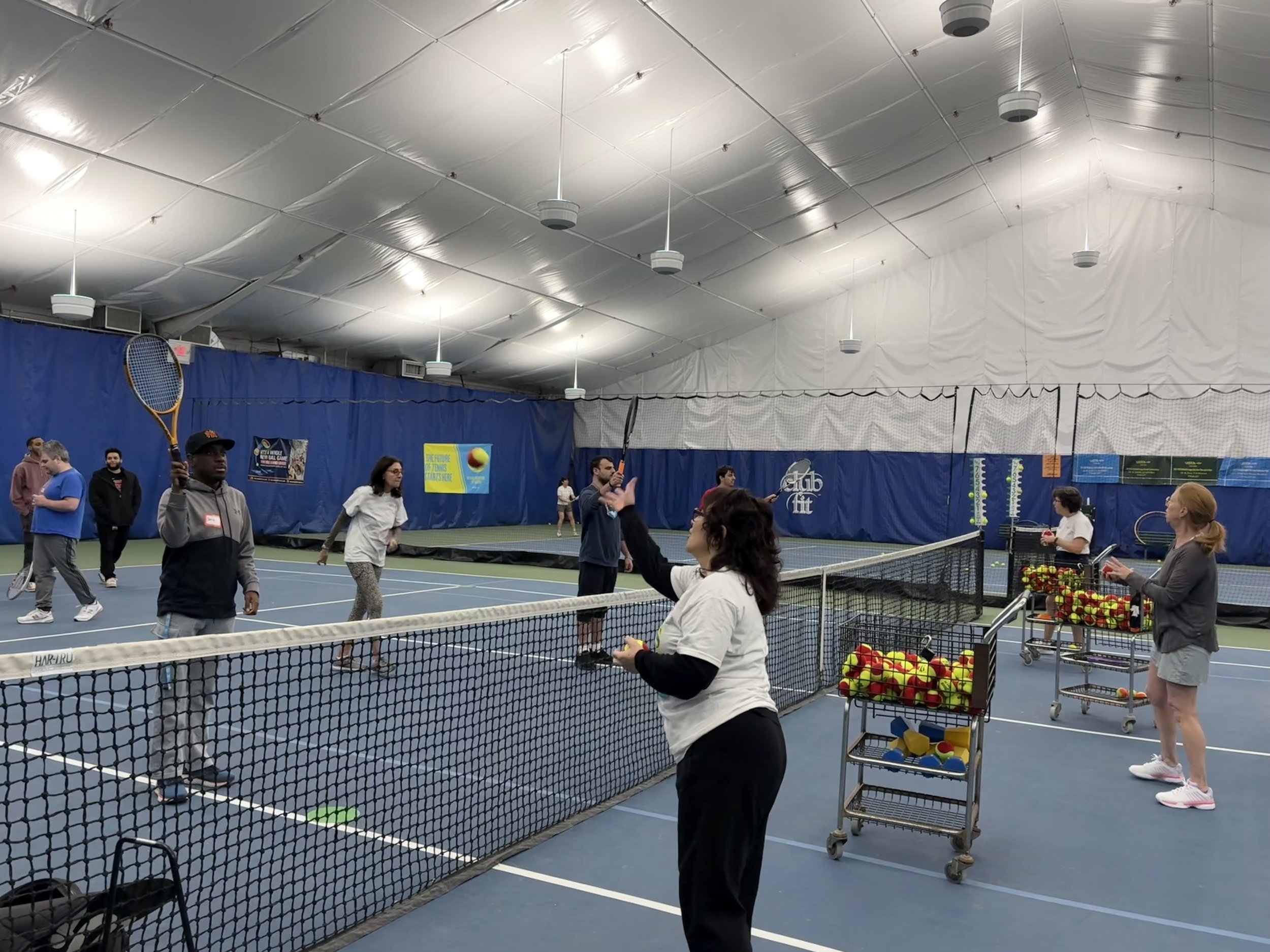An example is the program that was started last year at Club Fit Briarcliff for young adults who attend the day program at Cardinal McClosky Services. There, we have a dedicated group of more than twelve volunteers and ten men, and one woman who enjoy the challenges offered and are hitting the ball with skill! We work on all aspects of the game and continue to put skills together with the ultimate goal of rallying. Instruction is modified and adapted for each person’s needs and abilities, and we end the session with a cheer, “GO HERO”.